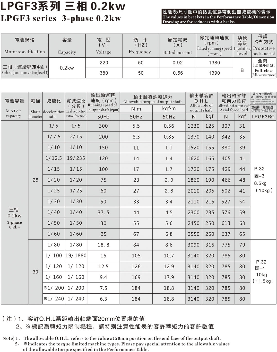 LPG F3系列三相0.2KW(RC型號)