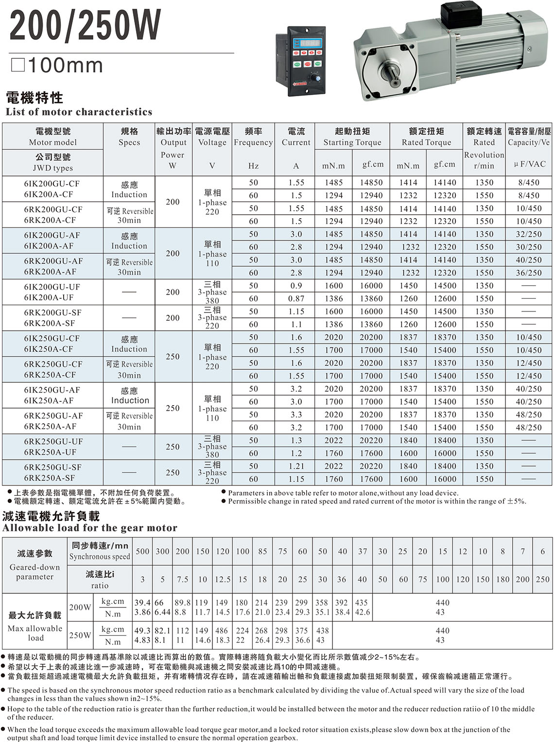 200/250W(RC/RT型號)